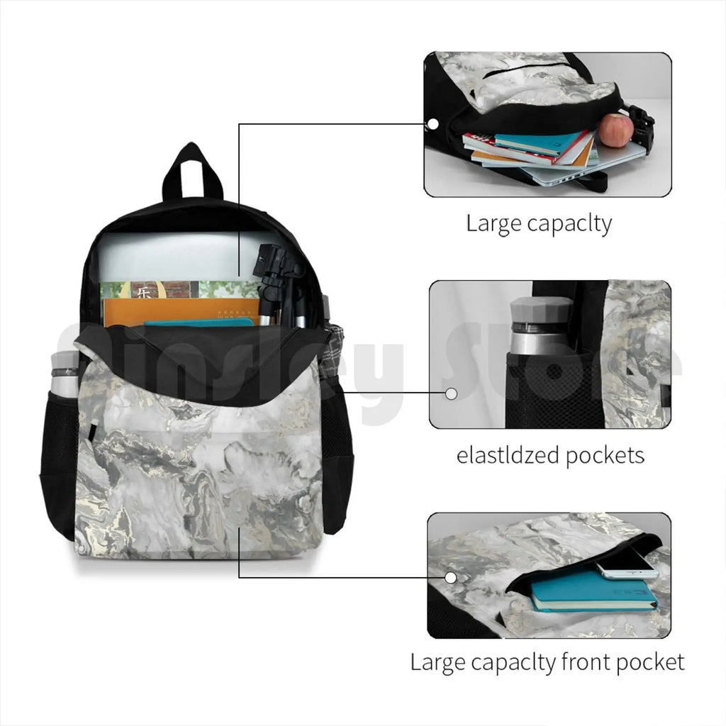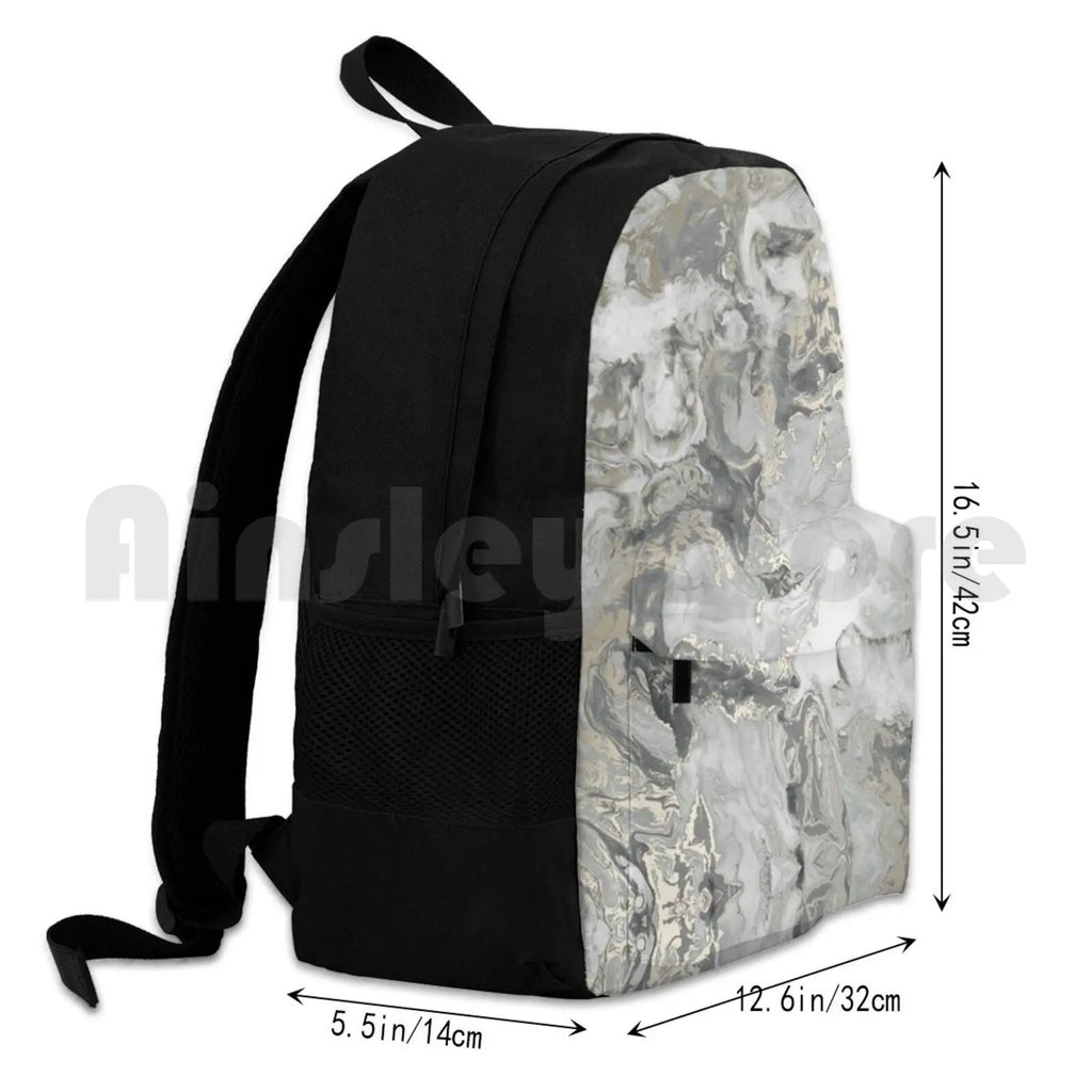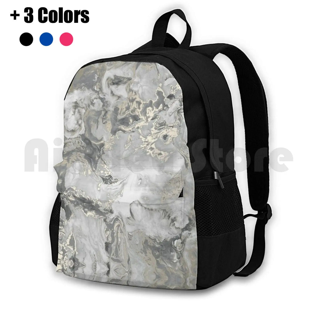 This marble gray outdoor backpack is designed for hiking, riding, climbing, and other sports activities. It features a stylish marble shell design with silver accents.