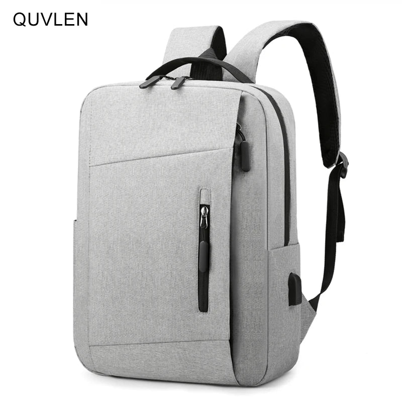 This men's backpack is designed for business use with its waterproof material and multiple functions. It features a portable and casual design suitable for daily use. The backpack also includes a USB charging port for added convenience.