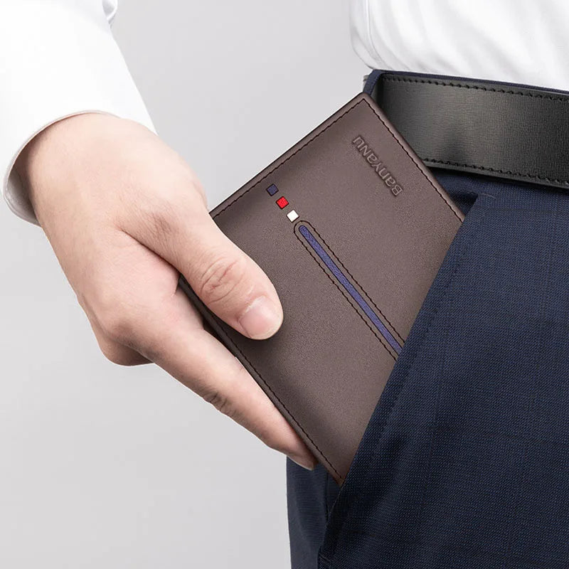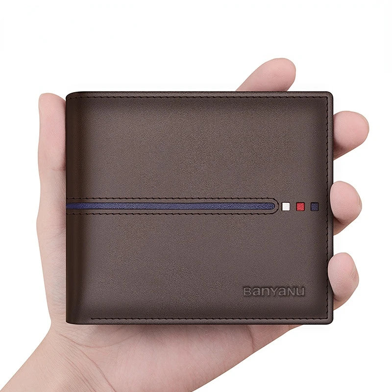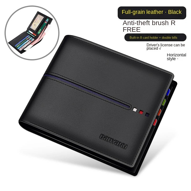 This men's short business casual wallet is made of high-quality first layer cowhide leather, perfect for a sophisticated look.