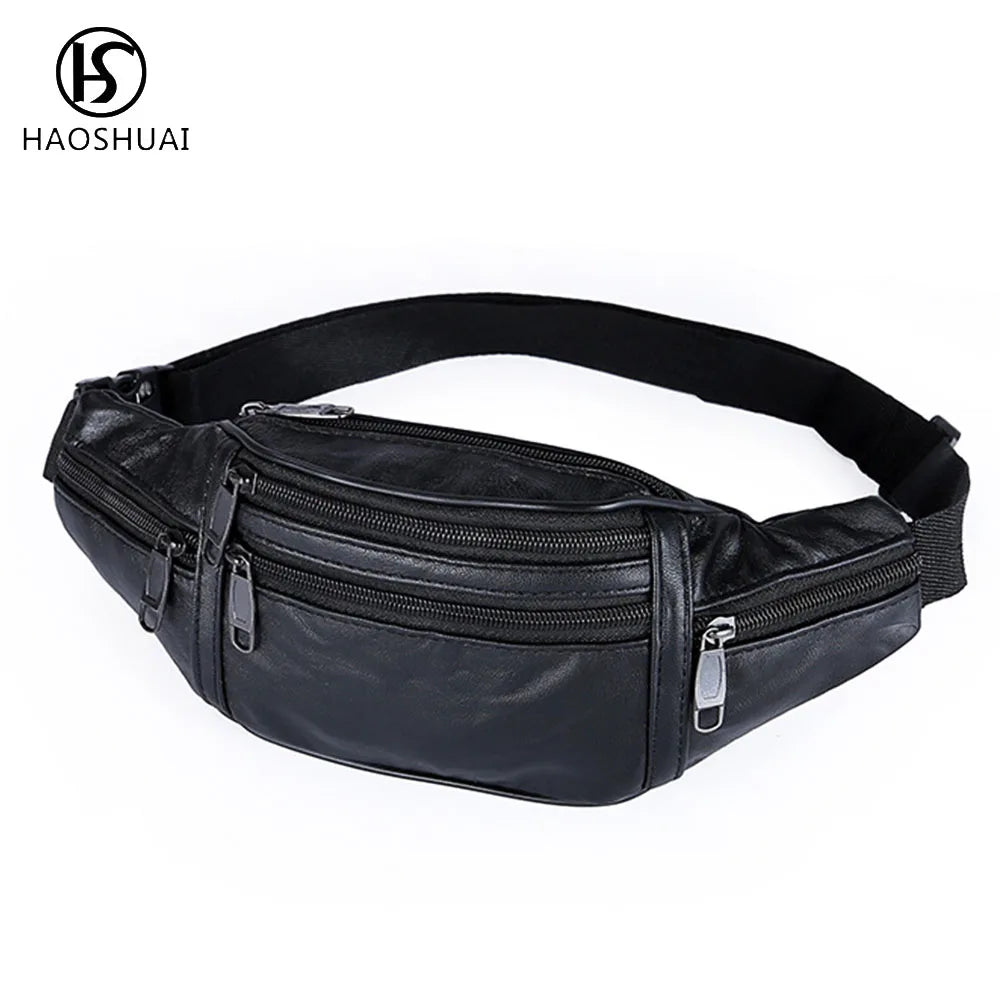 Men's Leather Waist Bag Fanny Pack Hip Belt Bag Casual Bags