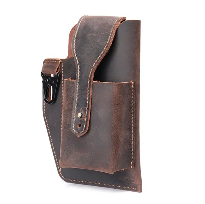 Men's Leather Waist Bag for Mobile Phone, Sports Tactics