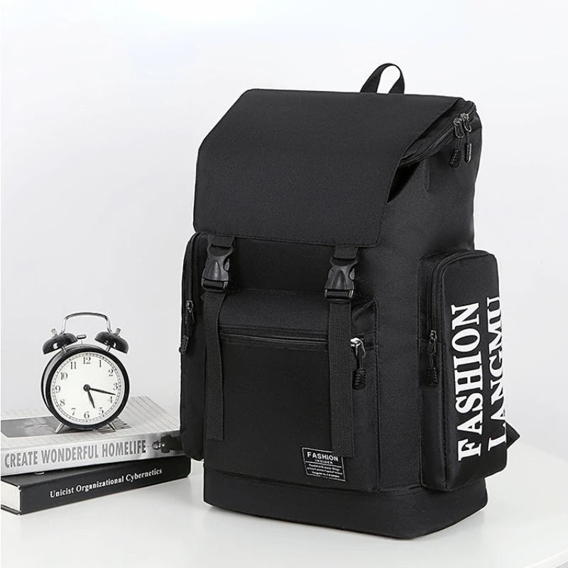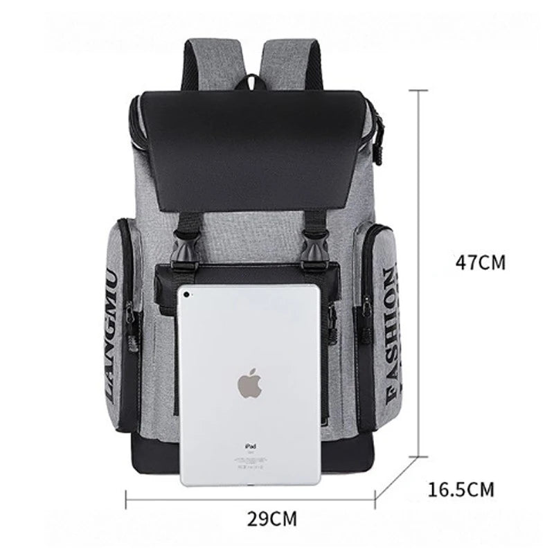 This men's backpack is designed for outdoor travel, leisure, and business commuting. It is lightweight and features a portable design with a multi-function compartment for laptops.