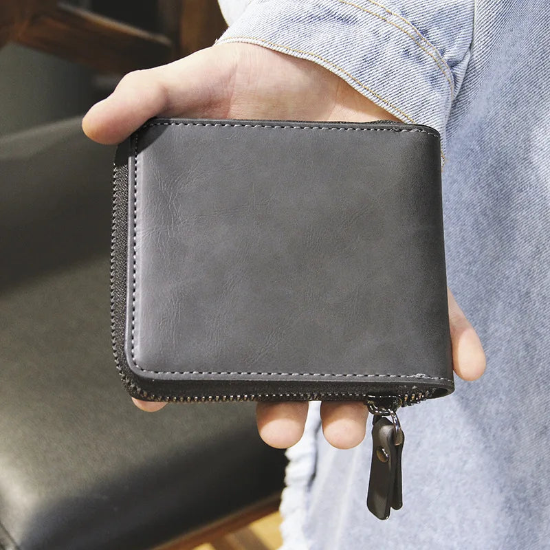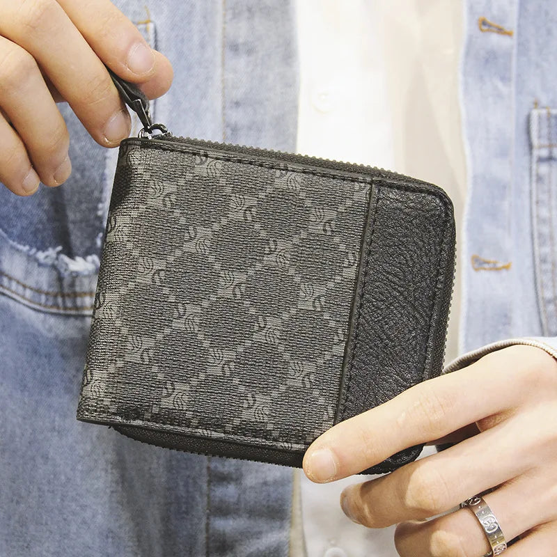 This stylish short wallet is made of anti-theft leather and features a plaid design. It has slots for ID, credit cards, and cash, making it perfect for everyday use.