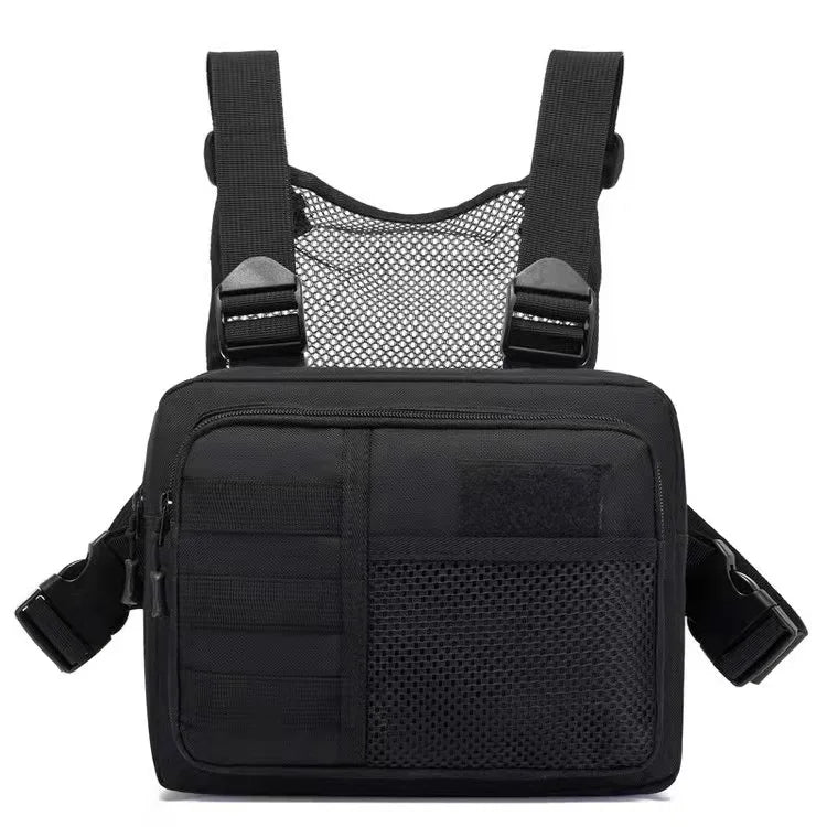 This chest bag is designed for men who value functionality and streetwear style. It can be worn as a chest rig or waist pack, making it versatile for various activities.