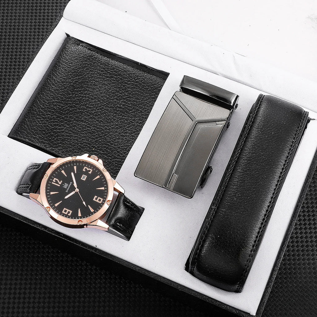 Men's Watch+Wallet+Belt Set Gift for Father Boyfriend PU Strap