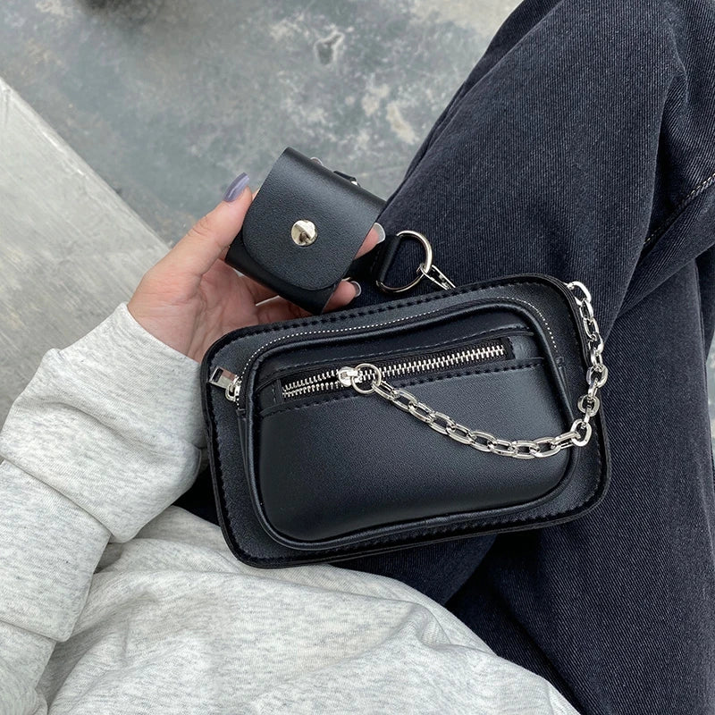 This mini crossbody bag is made of PU leather, featuring a stylish chain shoulder strap. It's perfect for casual outings, sports events, and travel. Stay organized and fashionable with this compact yet functional handbag.