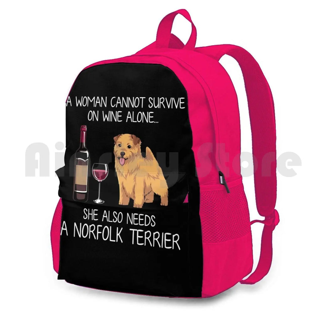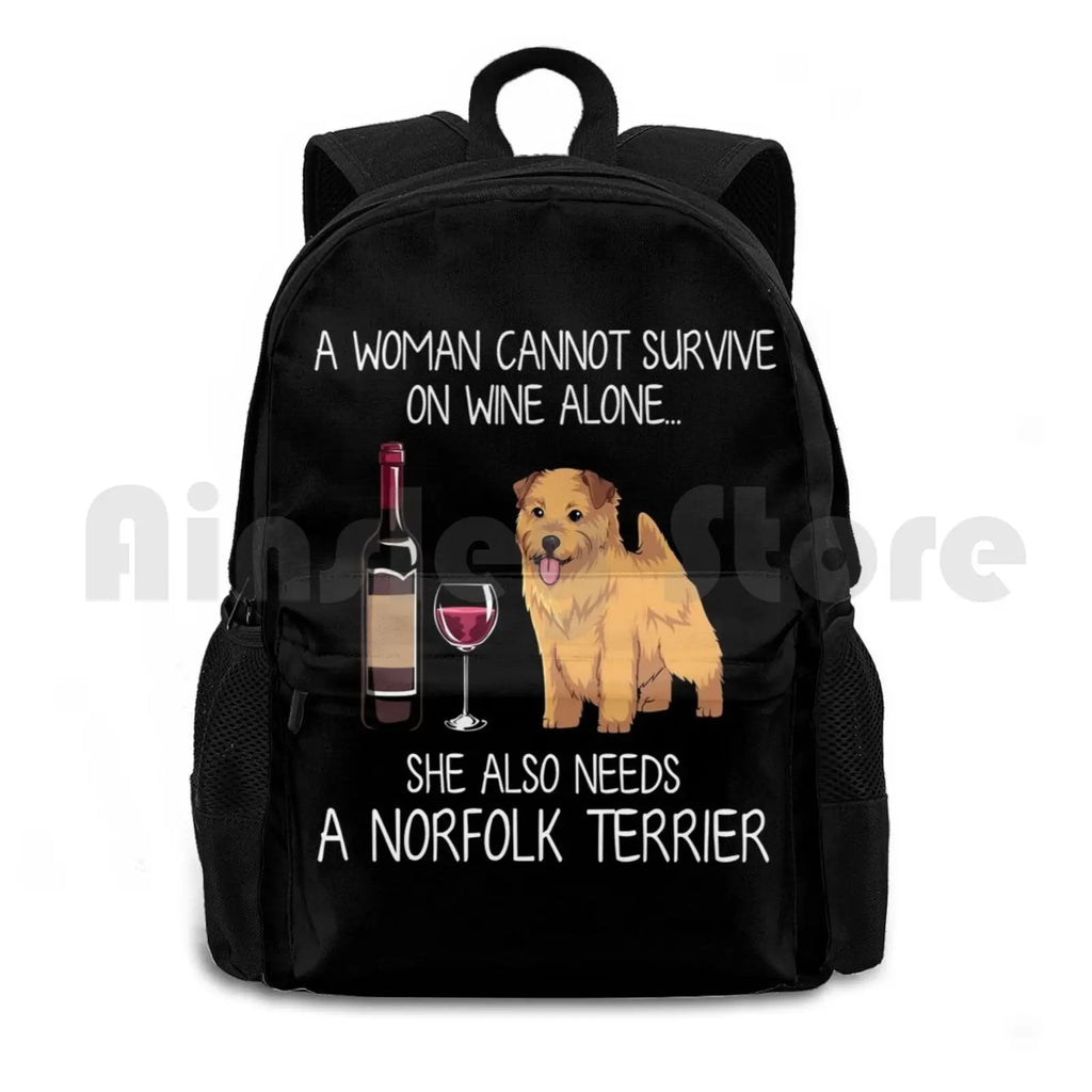 Norfolk Terrier And Wine Funny Dog Outdoor Hiking Backpack