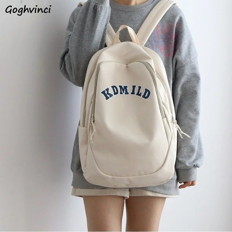 This stylish nylon backpack features a trendy Harajuku letter print design with a large capacity and waterproof material. Perfect for school, work, travel, and everyday use.