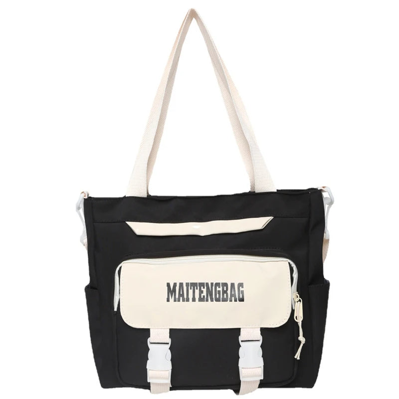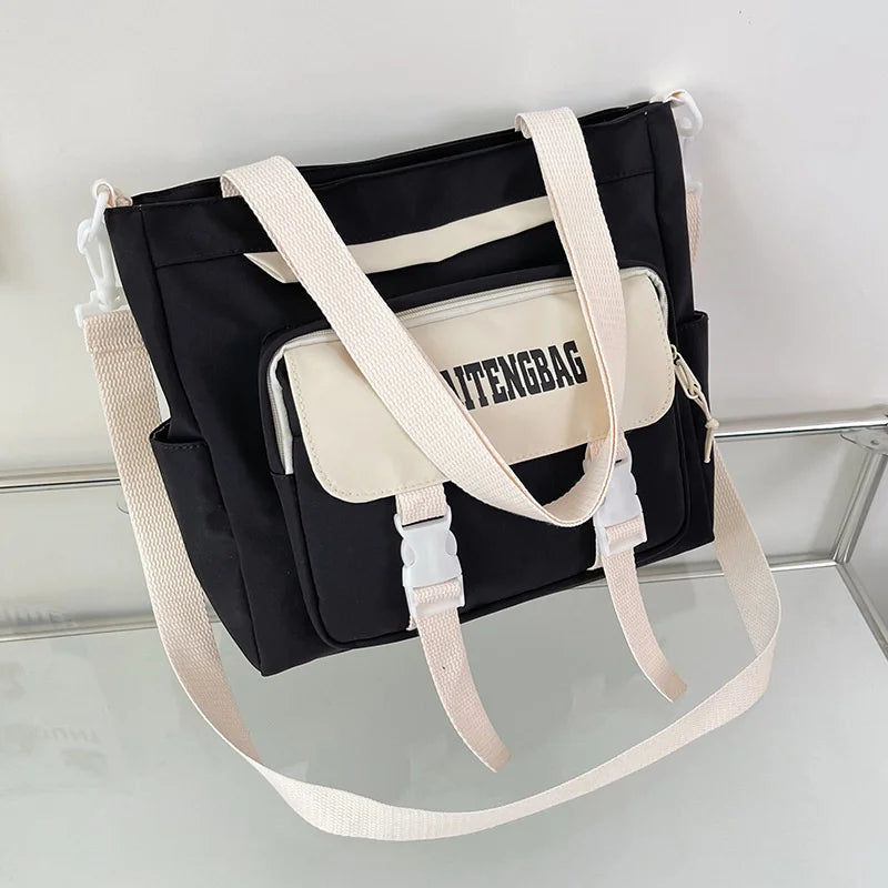 This stylish shoulder bag is perfect for middle school students and ladies. It features a nylon panelled design and offers ample space for laptops and other essentials.