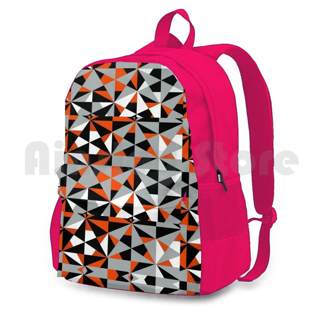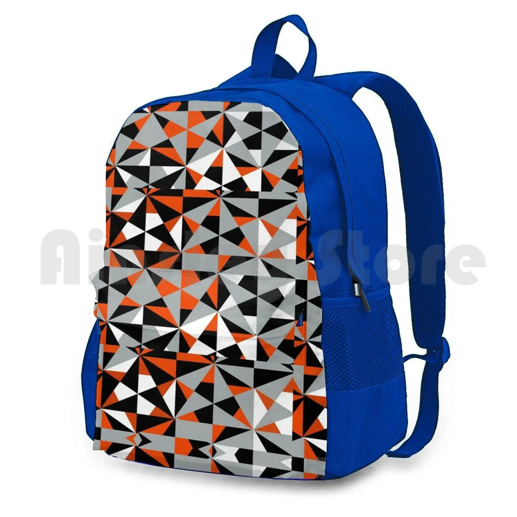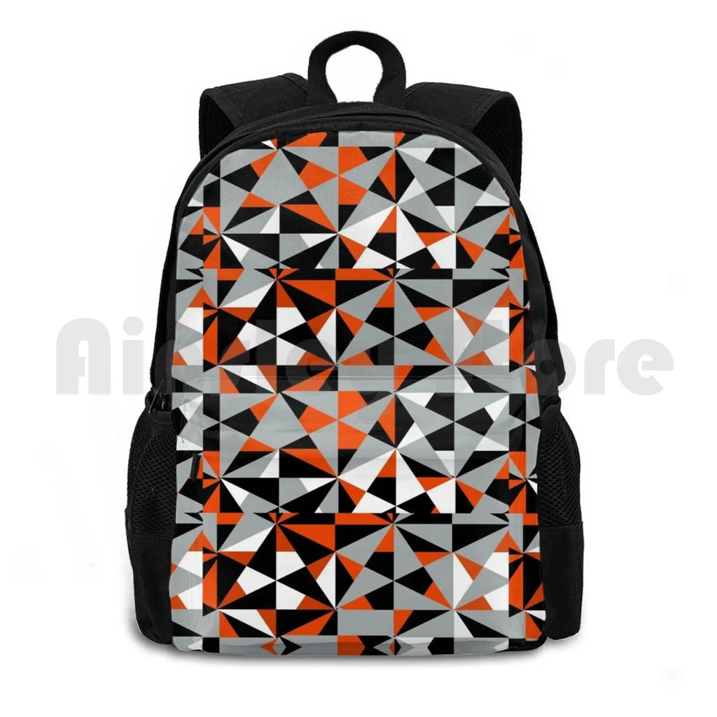 Orange Grey Geometric Abstract Pattern Outdoor Hiking Backpack