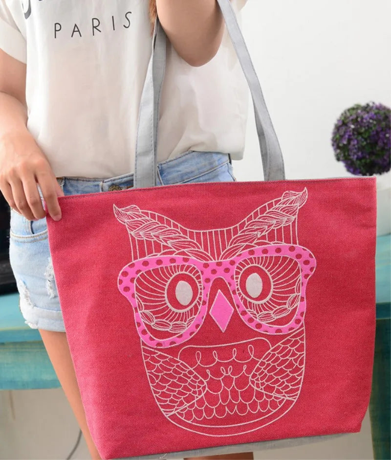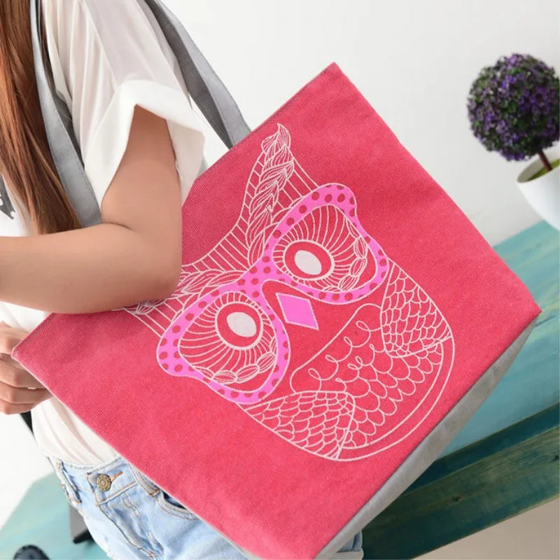Owl Print Shoulder Bag Women Casual Handbag Large Tote Purse
