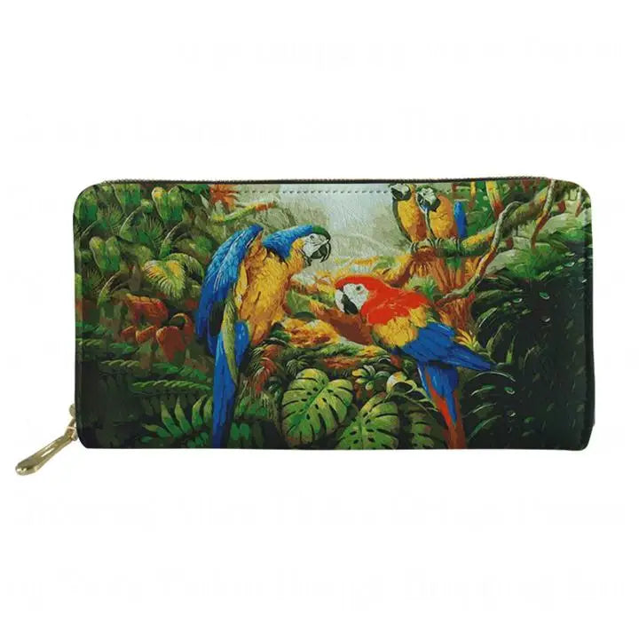 This stylish money bag features a beautiful parakeet oil painting print on PU leather. It is perfect for keeping your cash, cards, and phone organized.