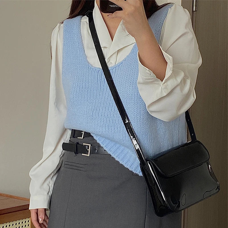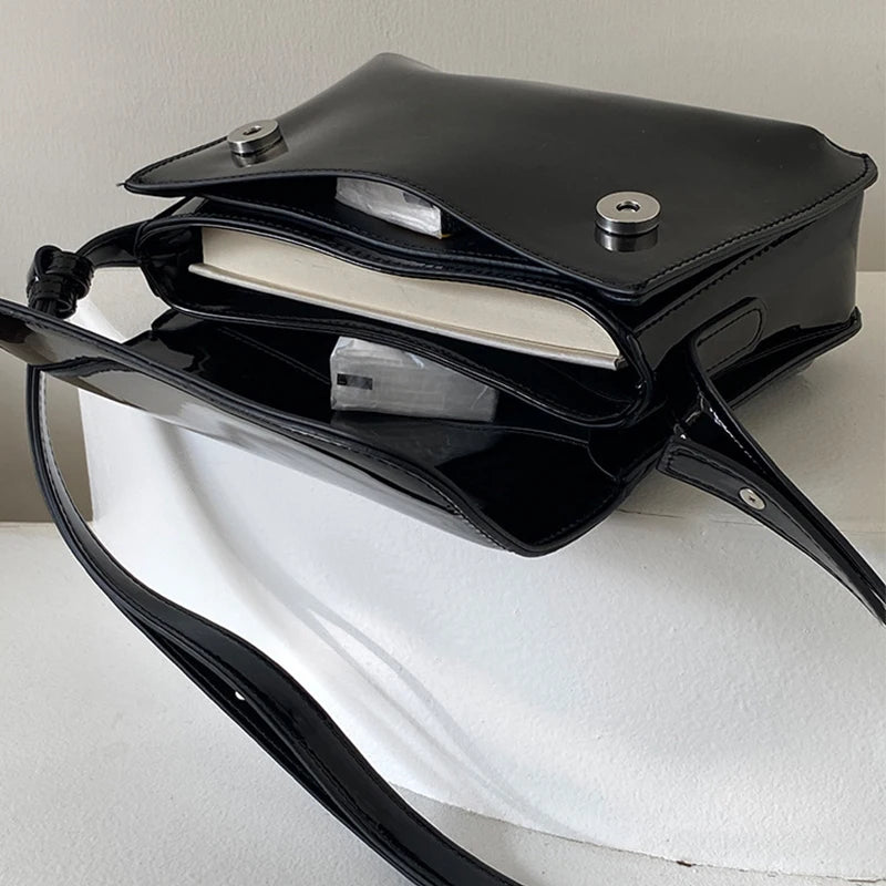 This retro patent leather underarm bag is perfect for casual outings. It features a small square design that adds a stylish touch to your look.