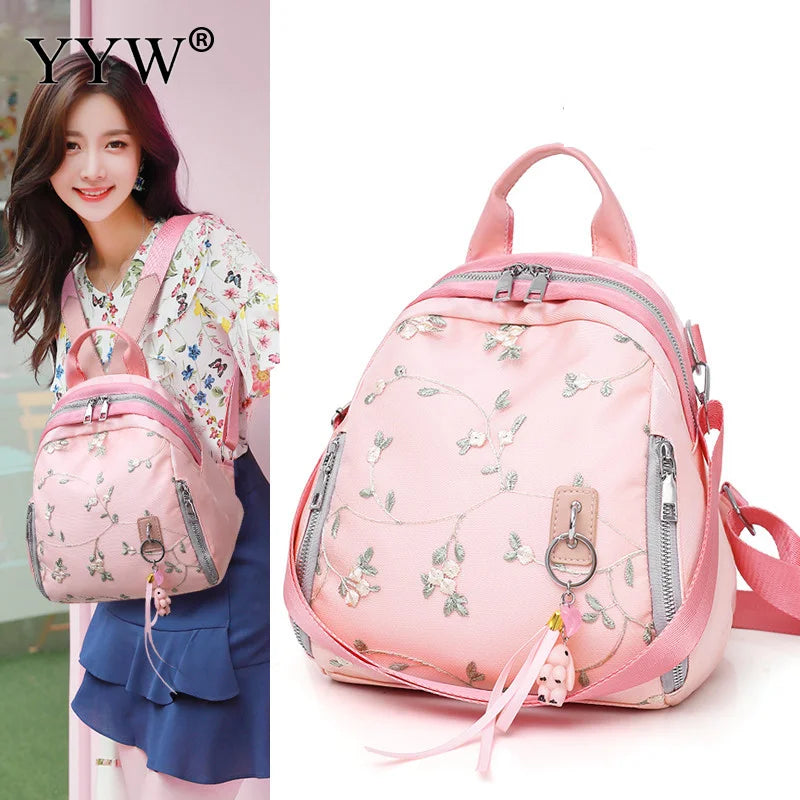 Pink Embroidery Flower Women's Backpack Preppy Style Casual Lovely Backpack