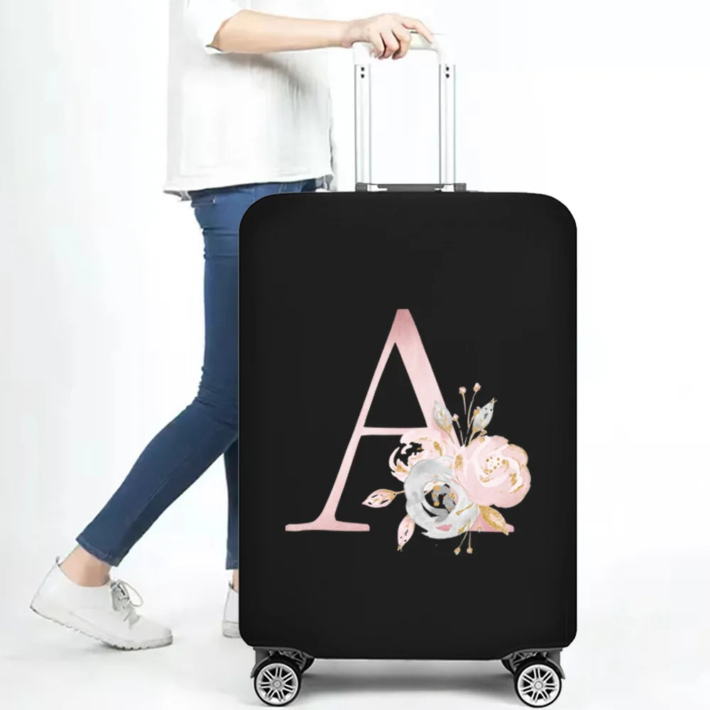 Protect your luggage in style with this pink flower English letter printed elastic luggage cover. Designed for 18 to 28-inch suitcases, it keeps your baggage secure and adds a touch of flair to your travel gear.