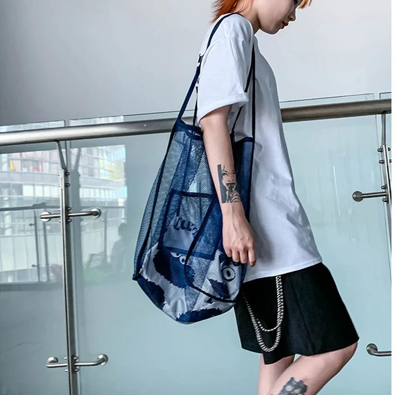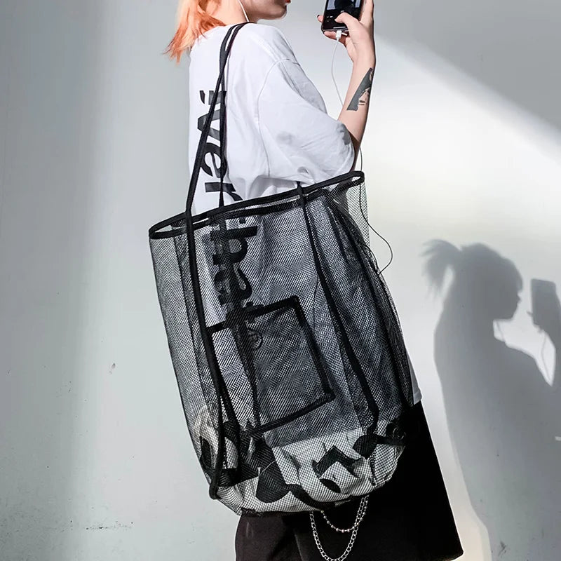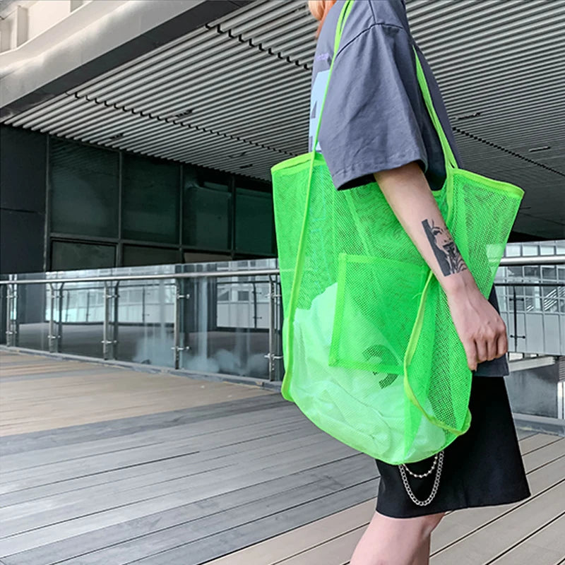 Pink Mesh Shoulder Bag Women Large High Capacity Shopping Handbags