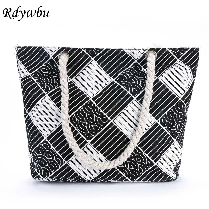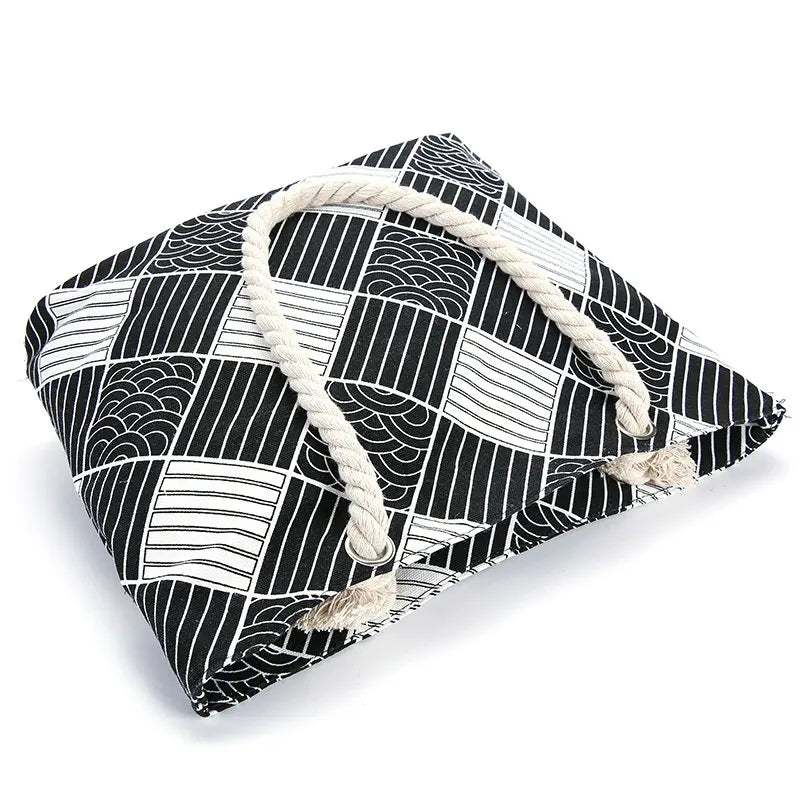 Plaid Beach Tote Canvas Shopping Bag Casual Shoulder Handbag B790
