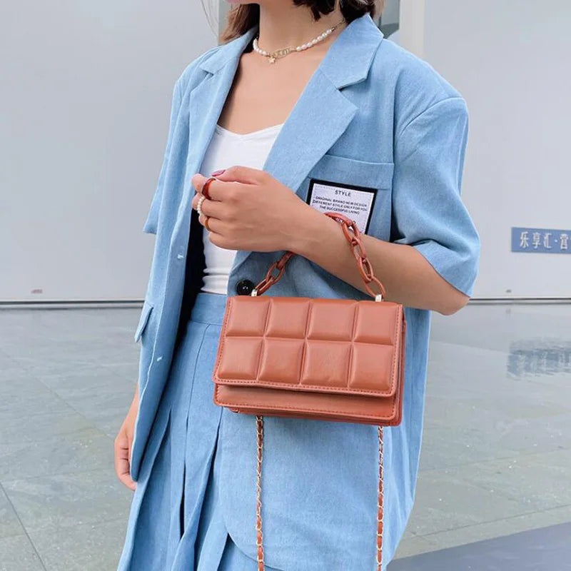 Plaid Shoulder Bag Small Crossbody Bags for Women Chain Messenger Bags