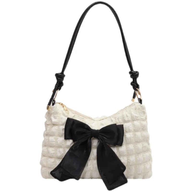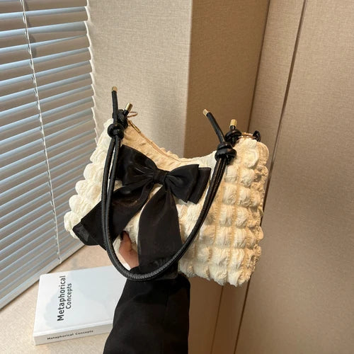 This pleated plaid crossbody bag with a cute bow design is perfect for casual outings. The soft material makes it comfortable to carry all day.