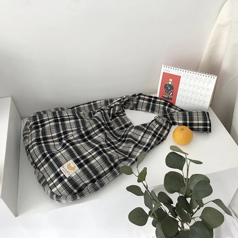 Plaid Women Shoulder Bag Soft Cloth Fabric Handbag Large Capacity Tote Sanded Ca