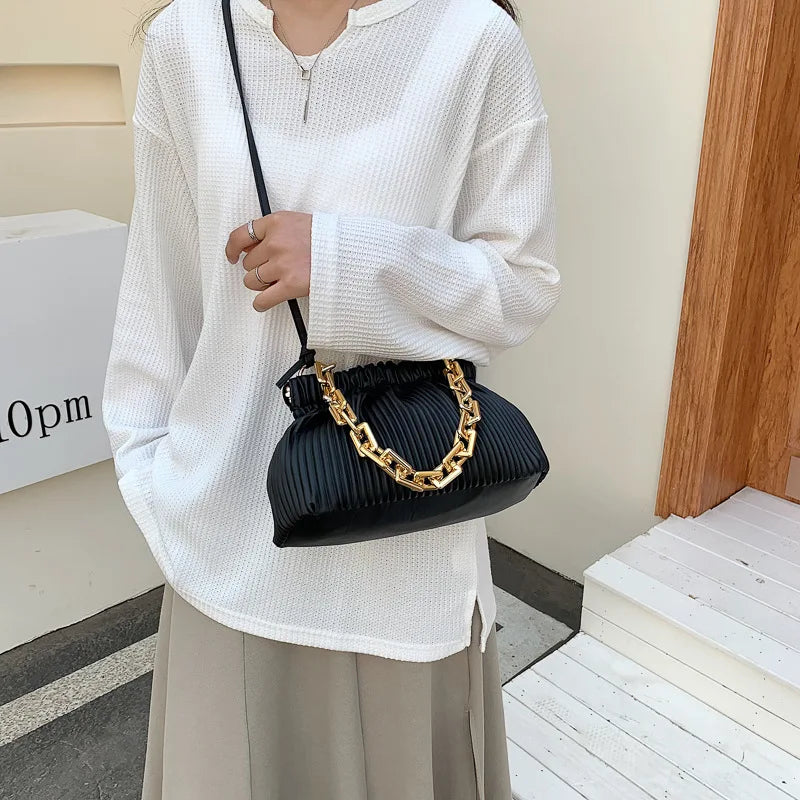 Pleated Shoulder Bag Purses Girl Messenger Chain Handbags