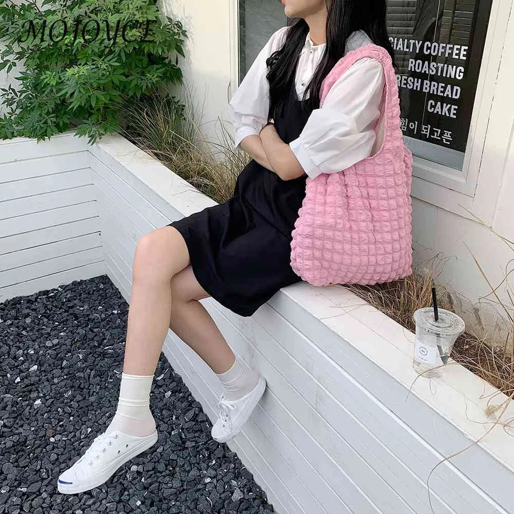 Pleated Top-handle Bag Bubble Clutch Handbag Large Capacity