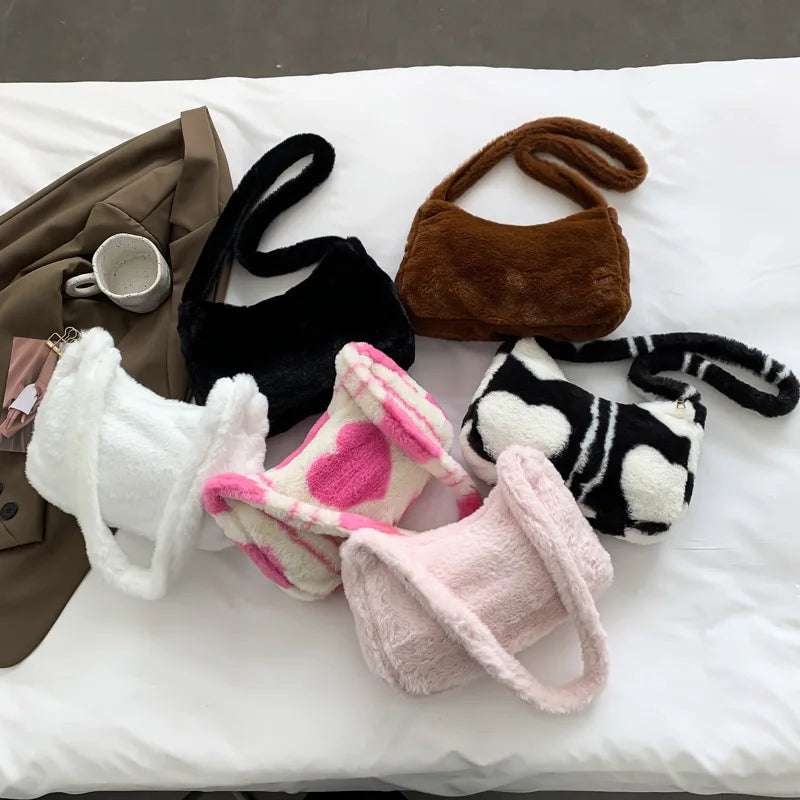 Plush Faux Fur Bag Top-handle Bags Winter Small Handbags