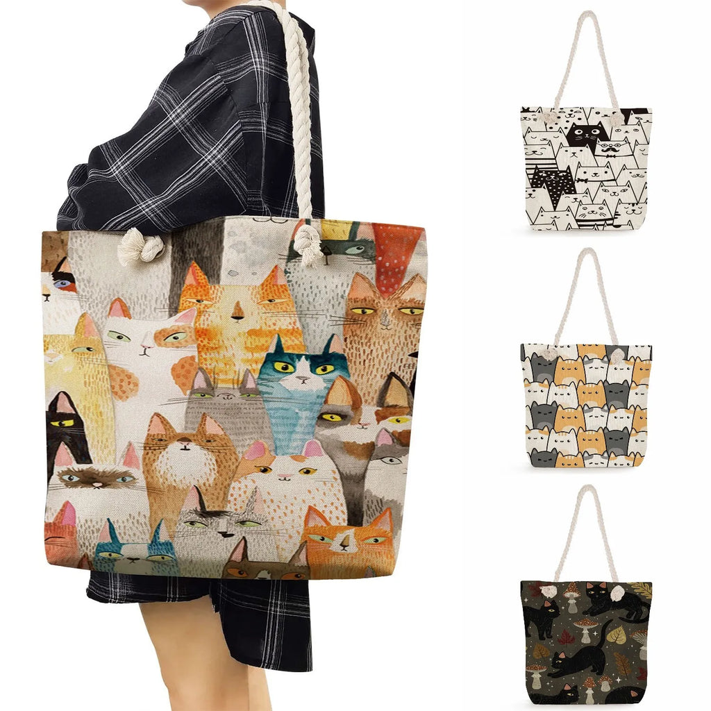 Polyester Foldable Grocery Tote Cat Print Shopping Bag