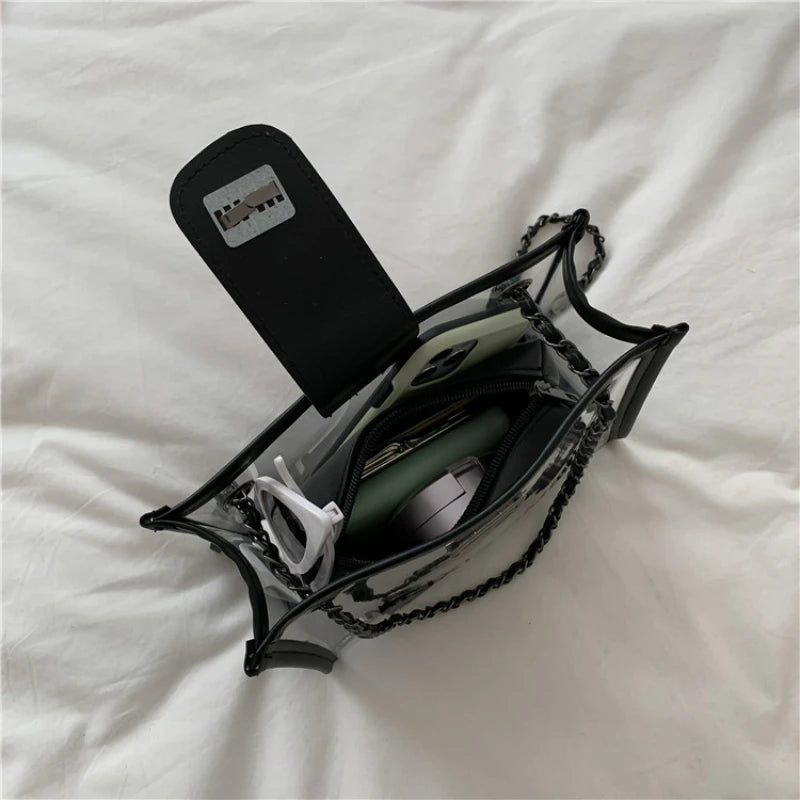 Stay stylish with this transparent composite bag made of PVC leather. It's perfect for carrying your essentials with its large capacity.