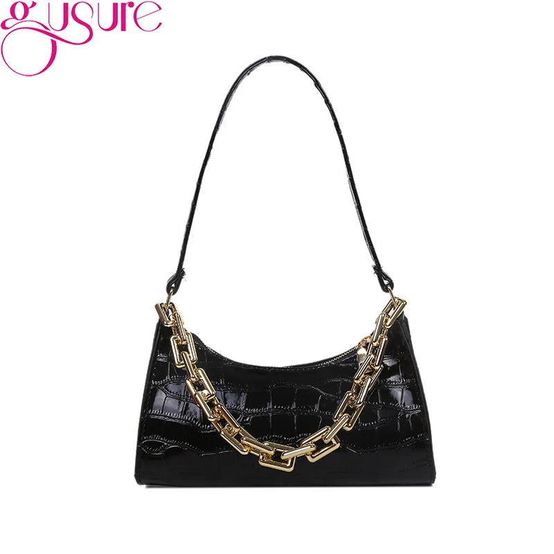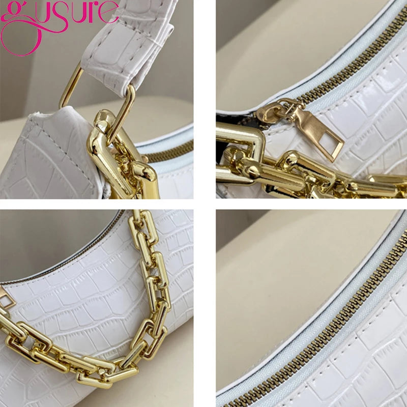 PU Leather Chain Shoulder Handbags Crocodile Pattern Female Underarm Bags