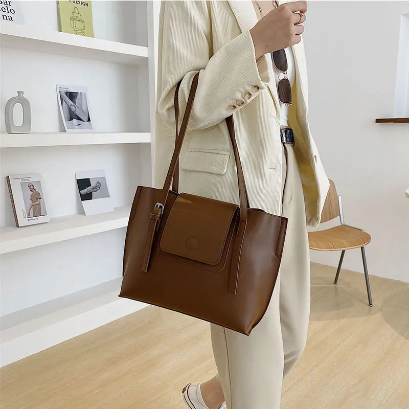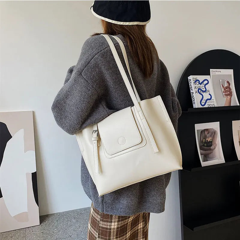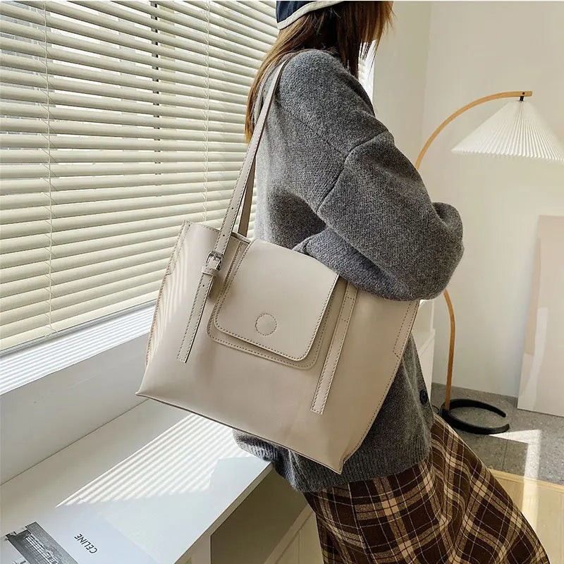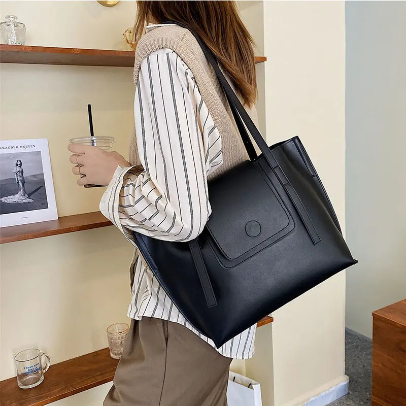 PU Leather Women's Shoulder Bag Large Capacity Handle Bag for Documents