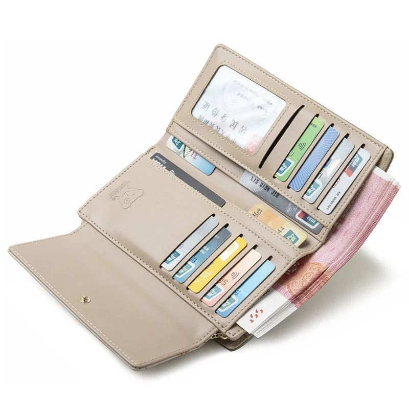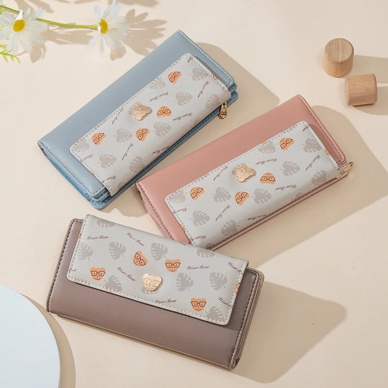 Purity Wallet Women's Long Wallet PU Bear Buckle Zipper Handbag