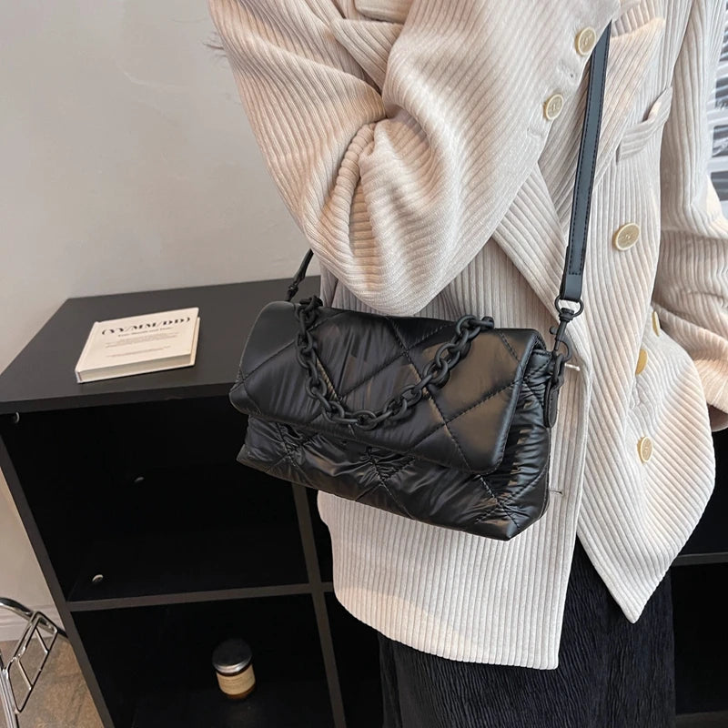 Quilted Chain Bag Padded Nylon Shoulder Bag