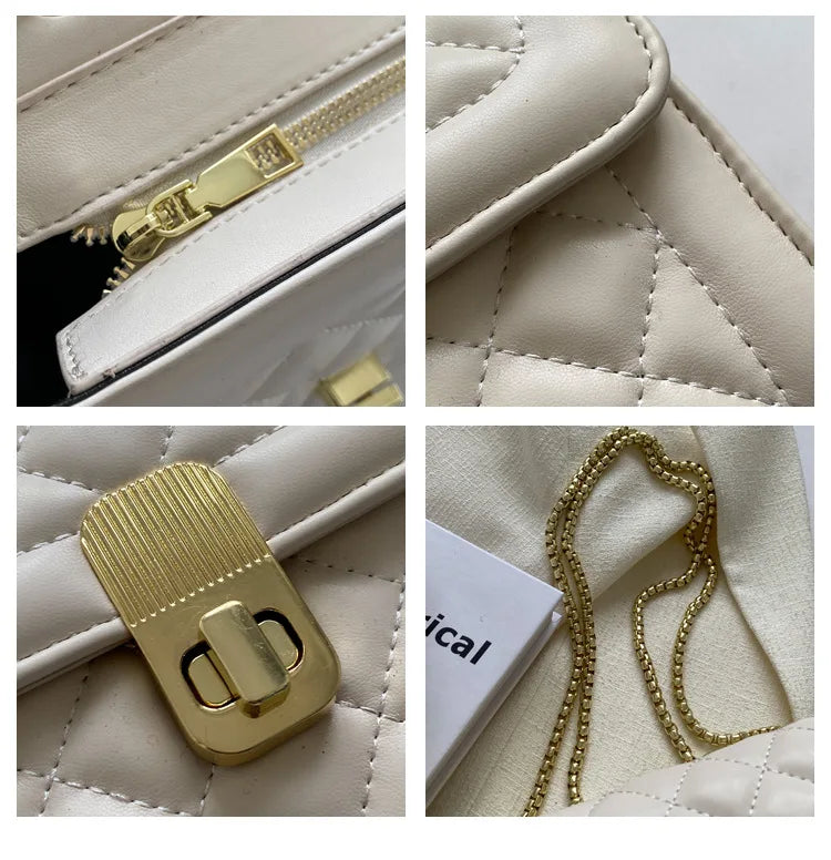 Quilted Crossbody Mini Handbag for Women Lock Flap Purse Messenger