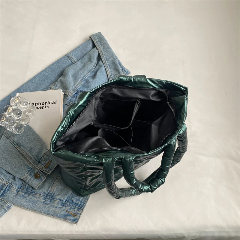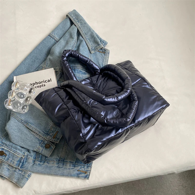 Quilted Large Shopper Bag Padded Cotton Handbag Tote Shoulder Bag