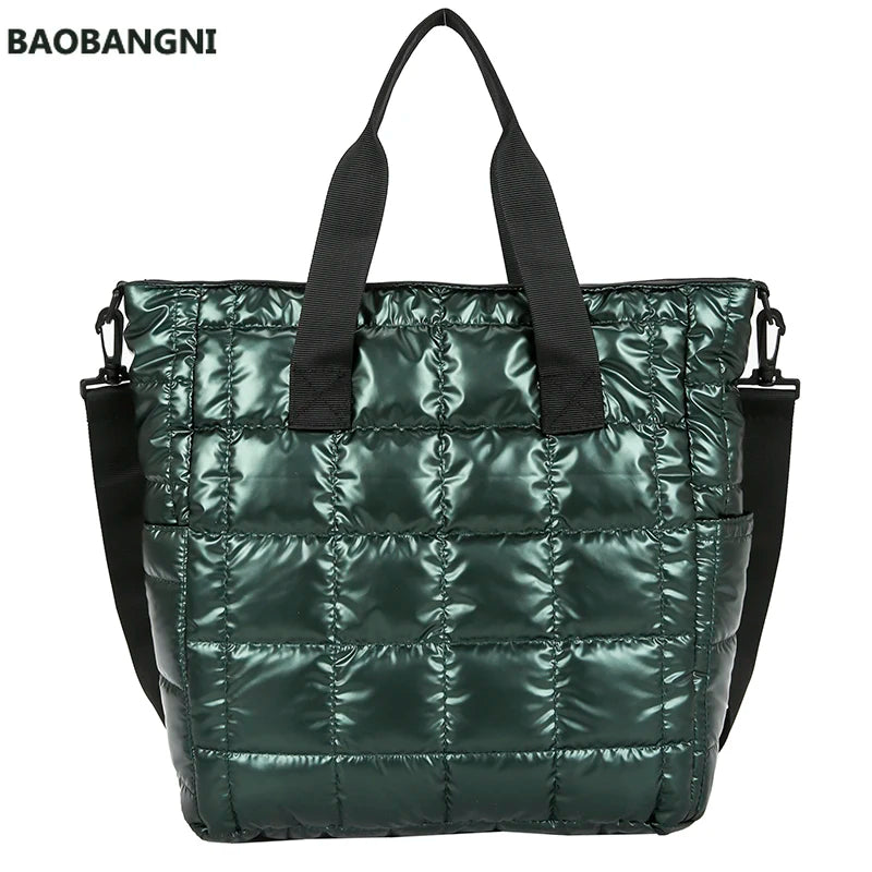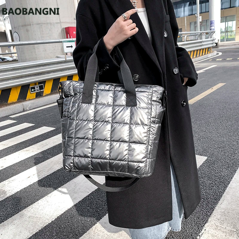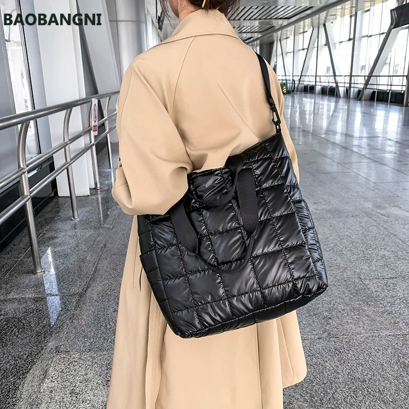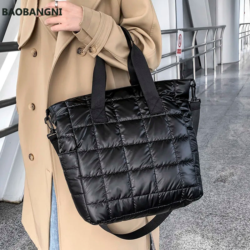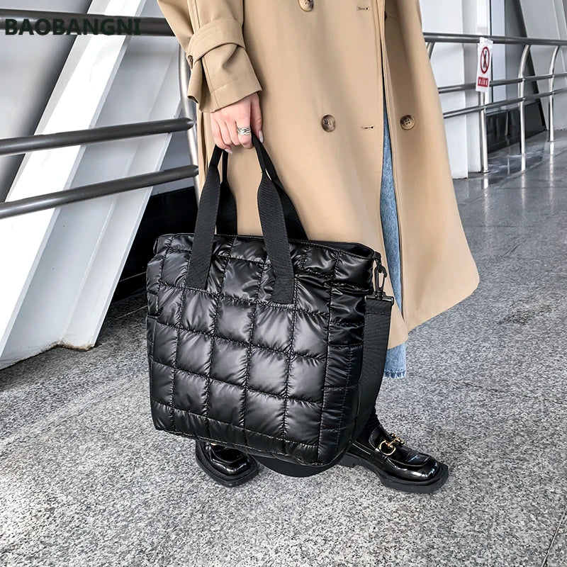 Quilted Nylon Shoulder Bag Cotton Padded Handbag Winter Large Capacity