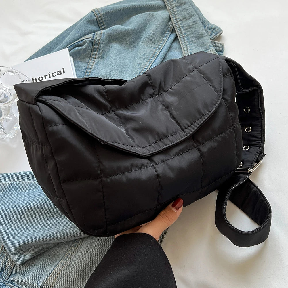 Quilted Shoulder Handbag Solid Rhombus Pattern Flap Pocket for Travel