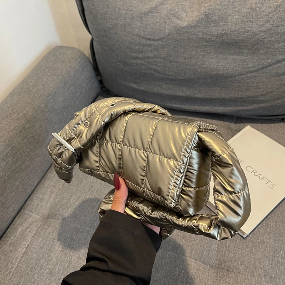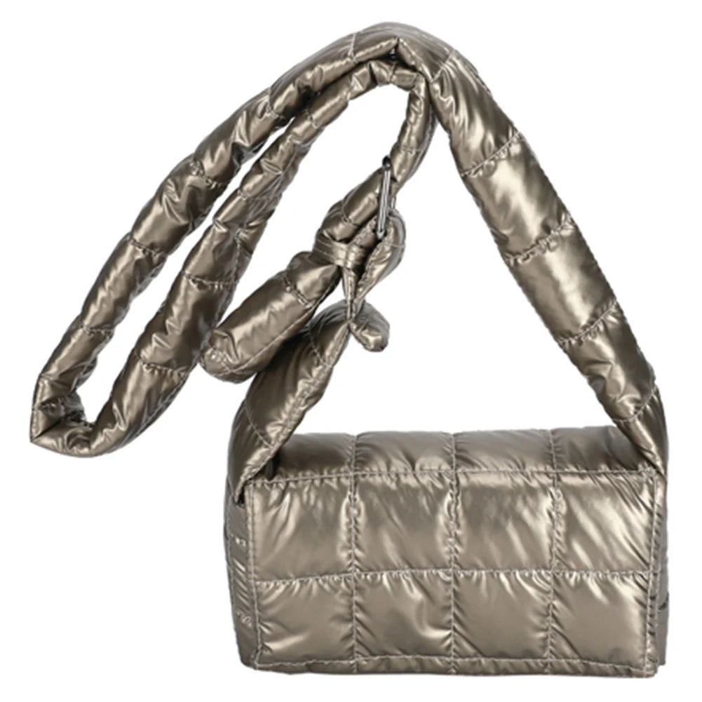 Stay stylish and organized with this quilted messenger bag made of soft solid nylon. Perfect for shopping or travel during autumn and winter.