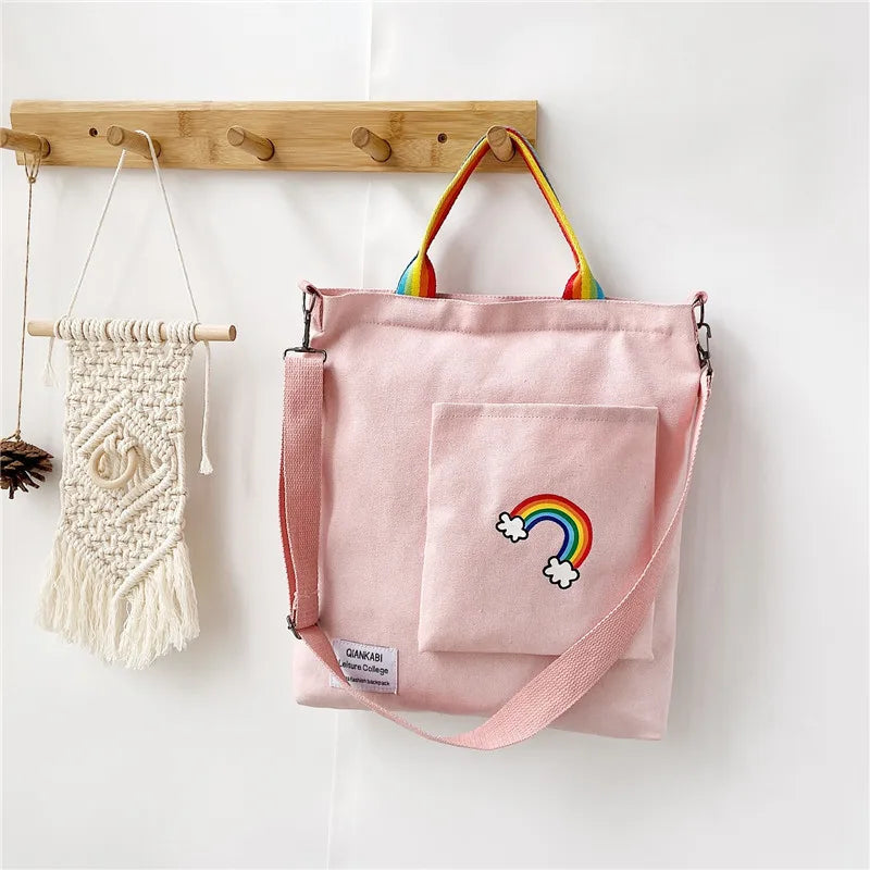 Rainbow Women Corduroy Zipper Shoulder Bag Casual Tote Female Crossbody Bag