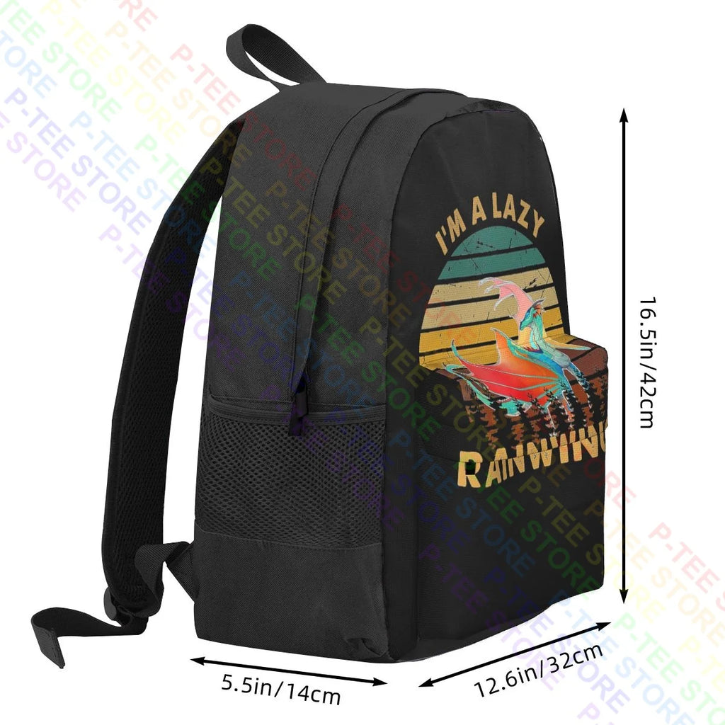 This eco-friendly backpack features a lazy Rainwing dragon design from the Wings of Fire series.