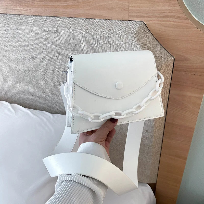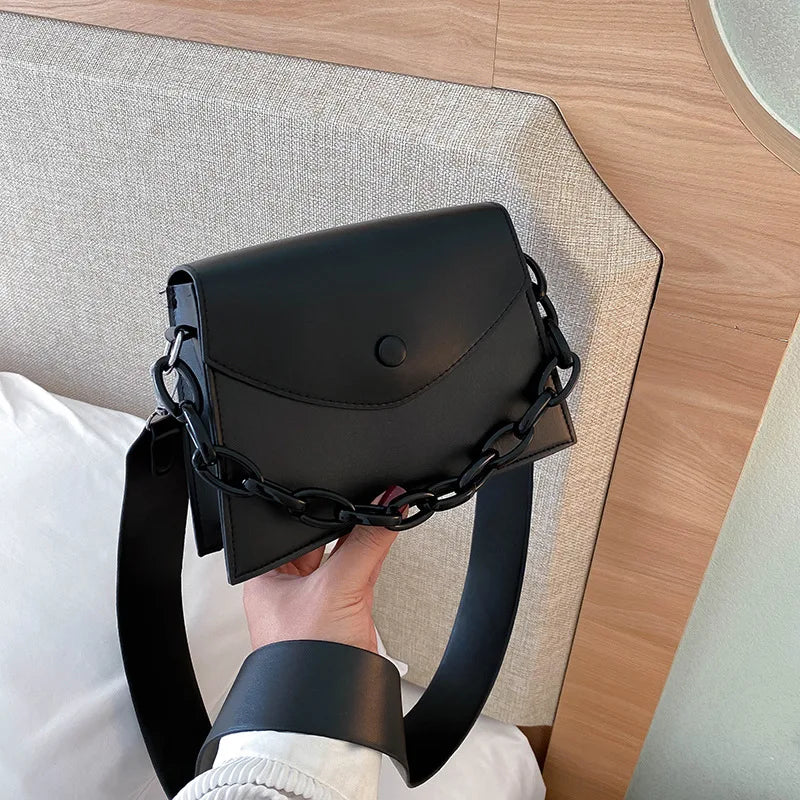 Elegant and compact, this flap Pu leather handbag is perfect for women on the go.