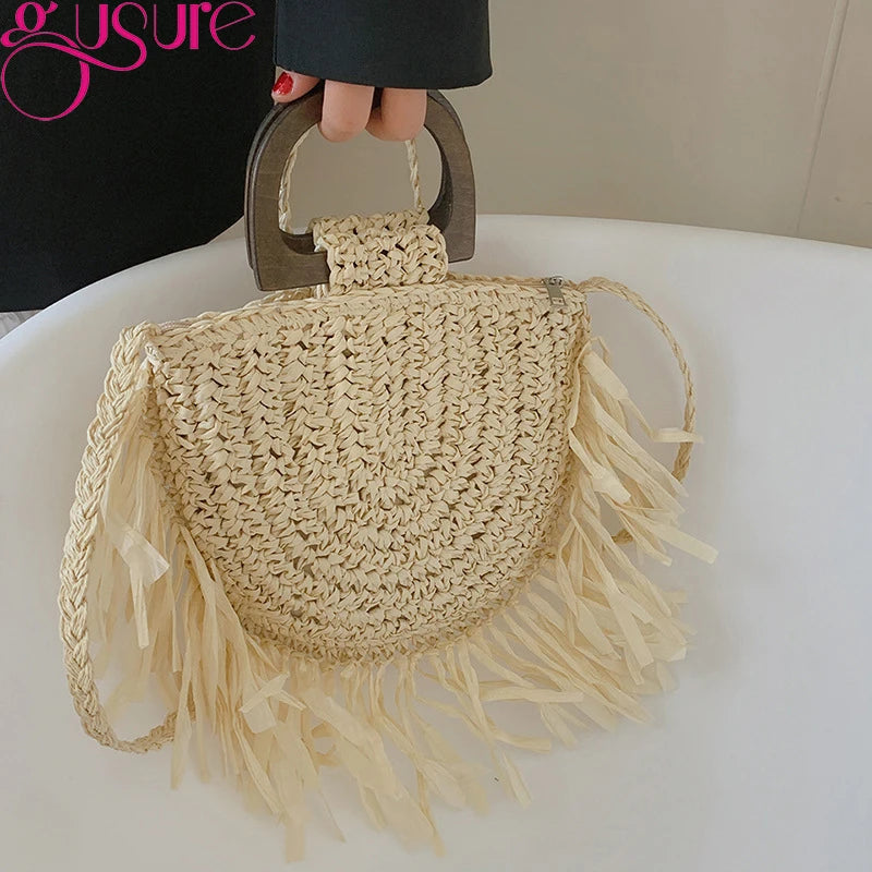 Rattan Knitting Women Straw Crossbody Bag Small Handbag for Summer Beach