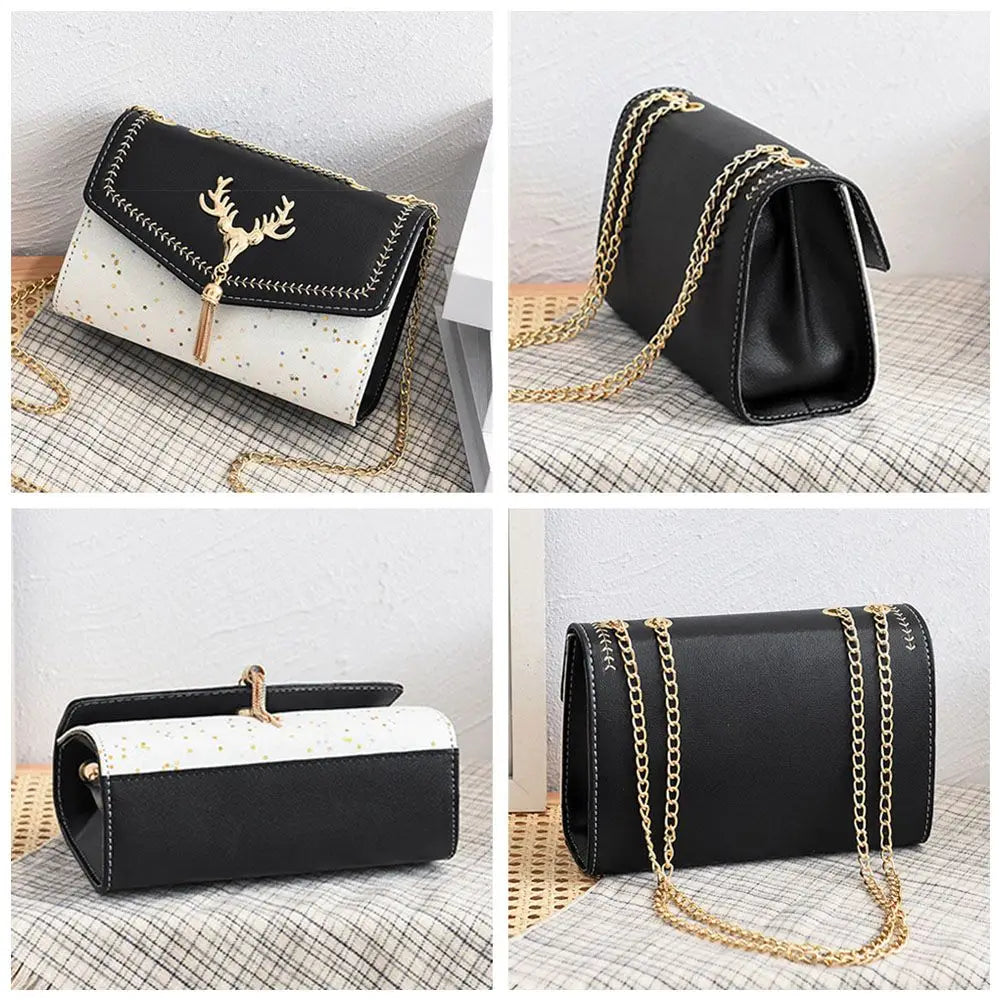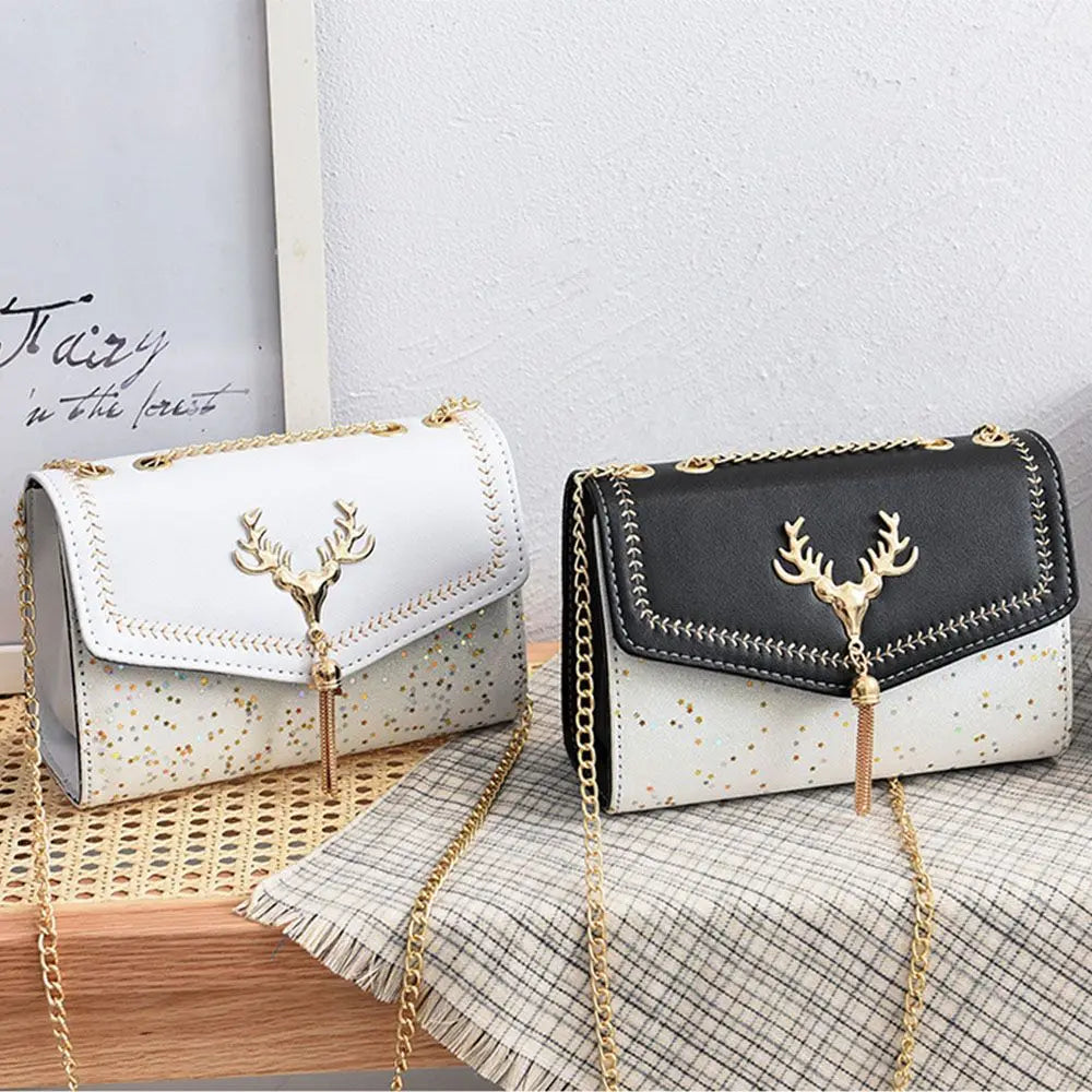 Retro Casual Women Totes Square Shoulder Bags Deer Head Chain Handbag