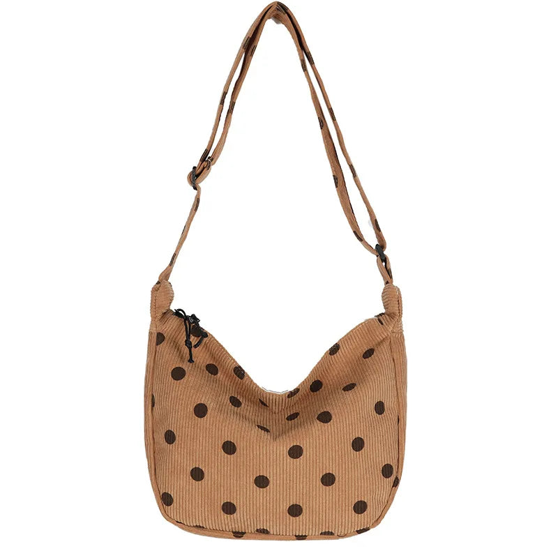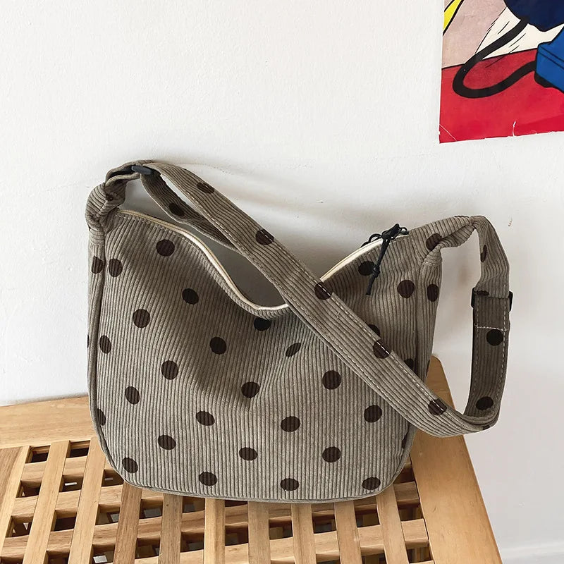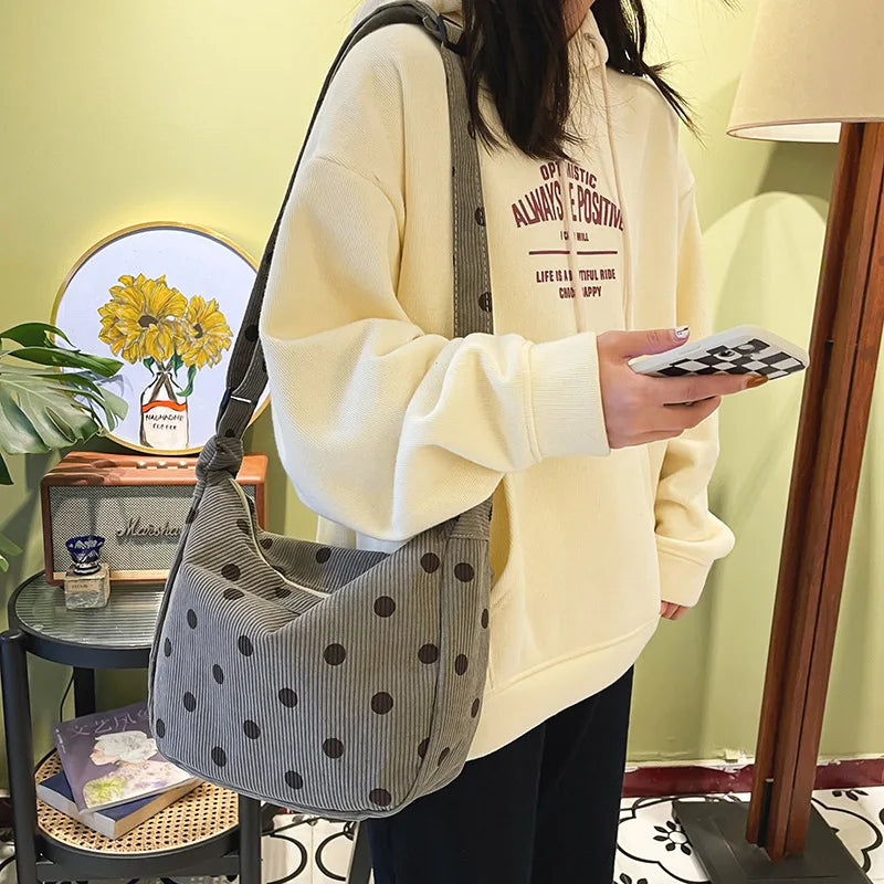 Retro Corduroy Wave Dot Tote Bag Soft Stripe Crossbody Handbag