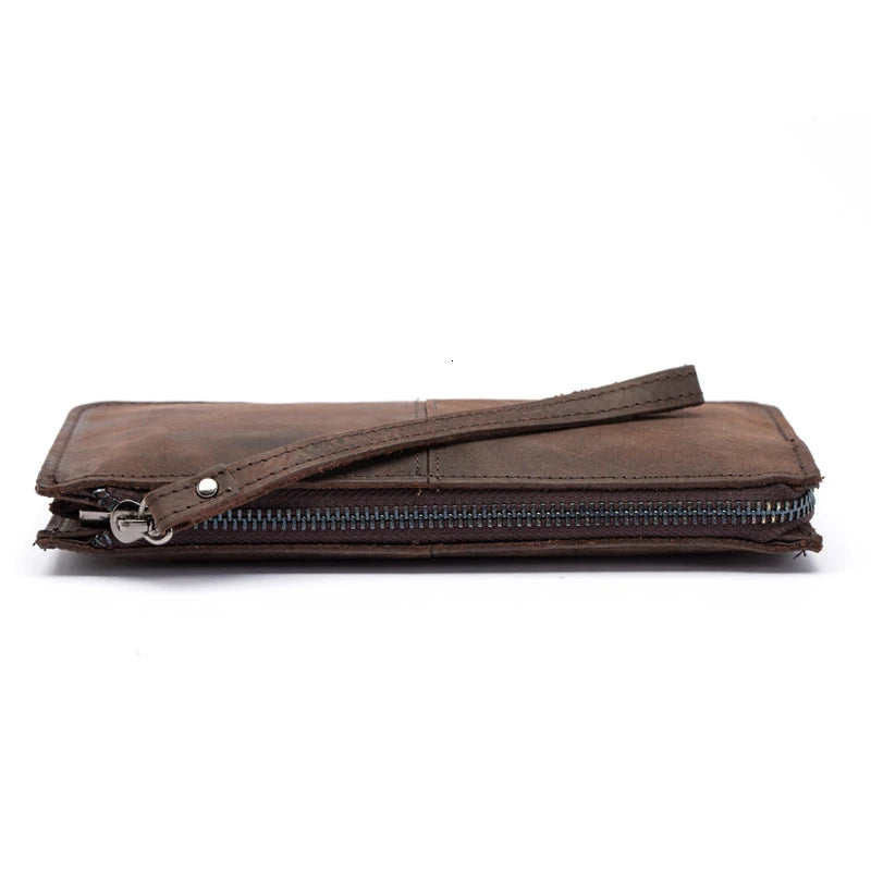 Retro Crazy Horse Leather Long Wallet Men Women Clutch Bag Handbag