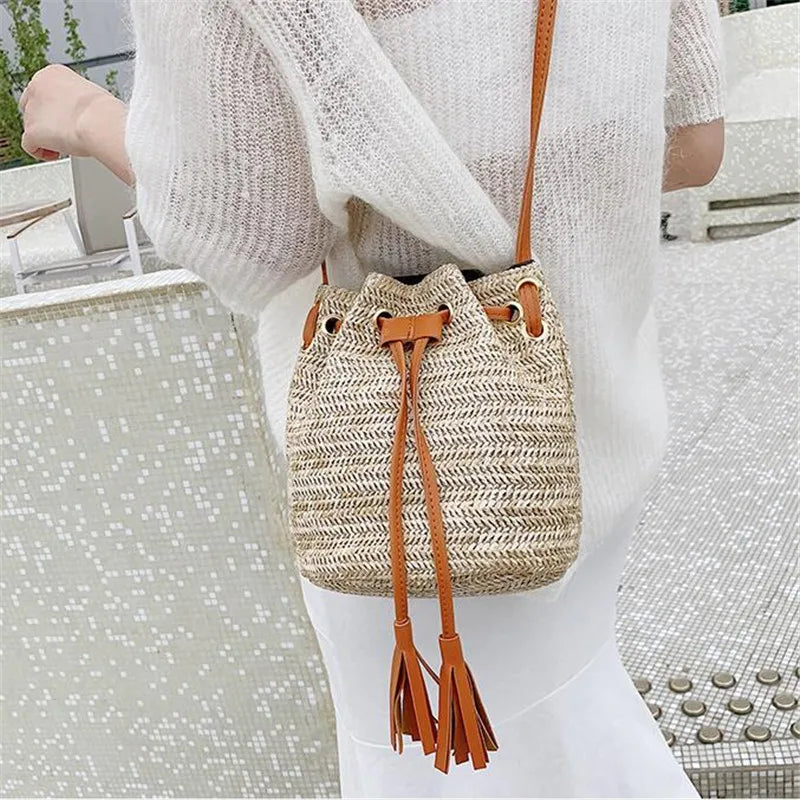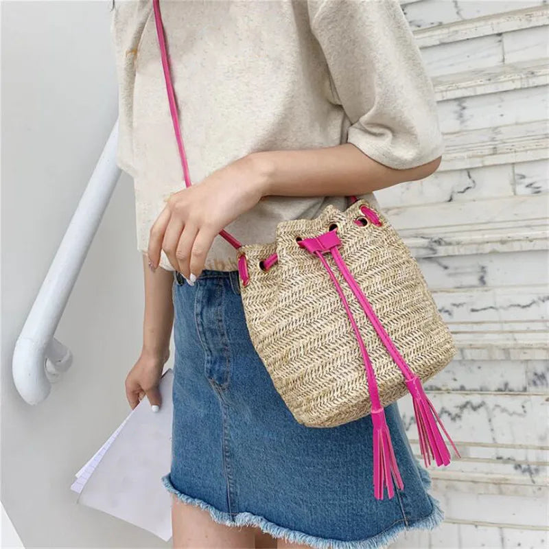 Stay stylish this summer with our retro drawstring bucket bag featuring tassel details. This handbag is perfect for everyday use, whether you carry it by the handle or sling it over your shoulder.