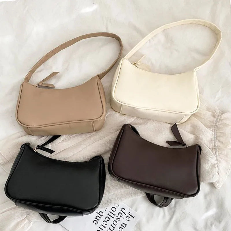 Elevate your style with this retro solid PU leather underarm bag perfect for winter. It's a practical and fashionable addition to any outfit.