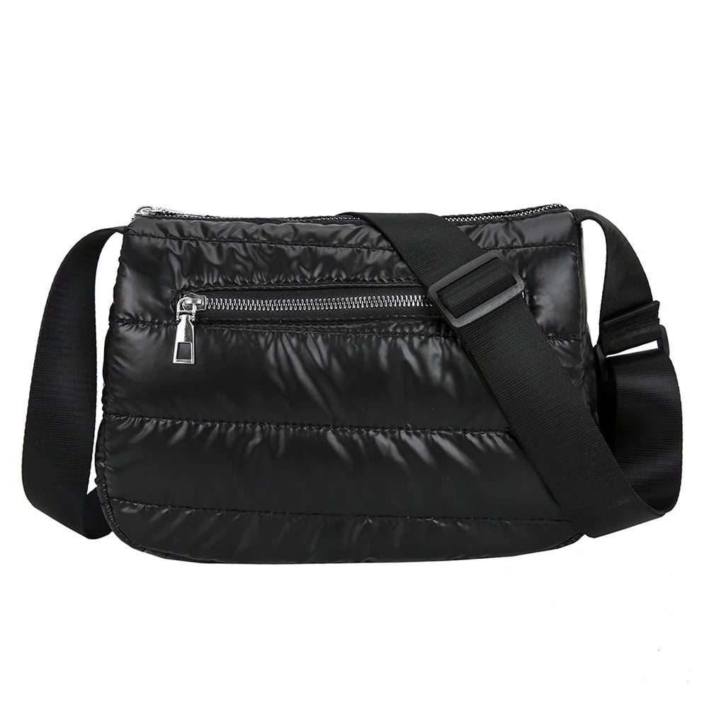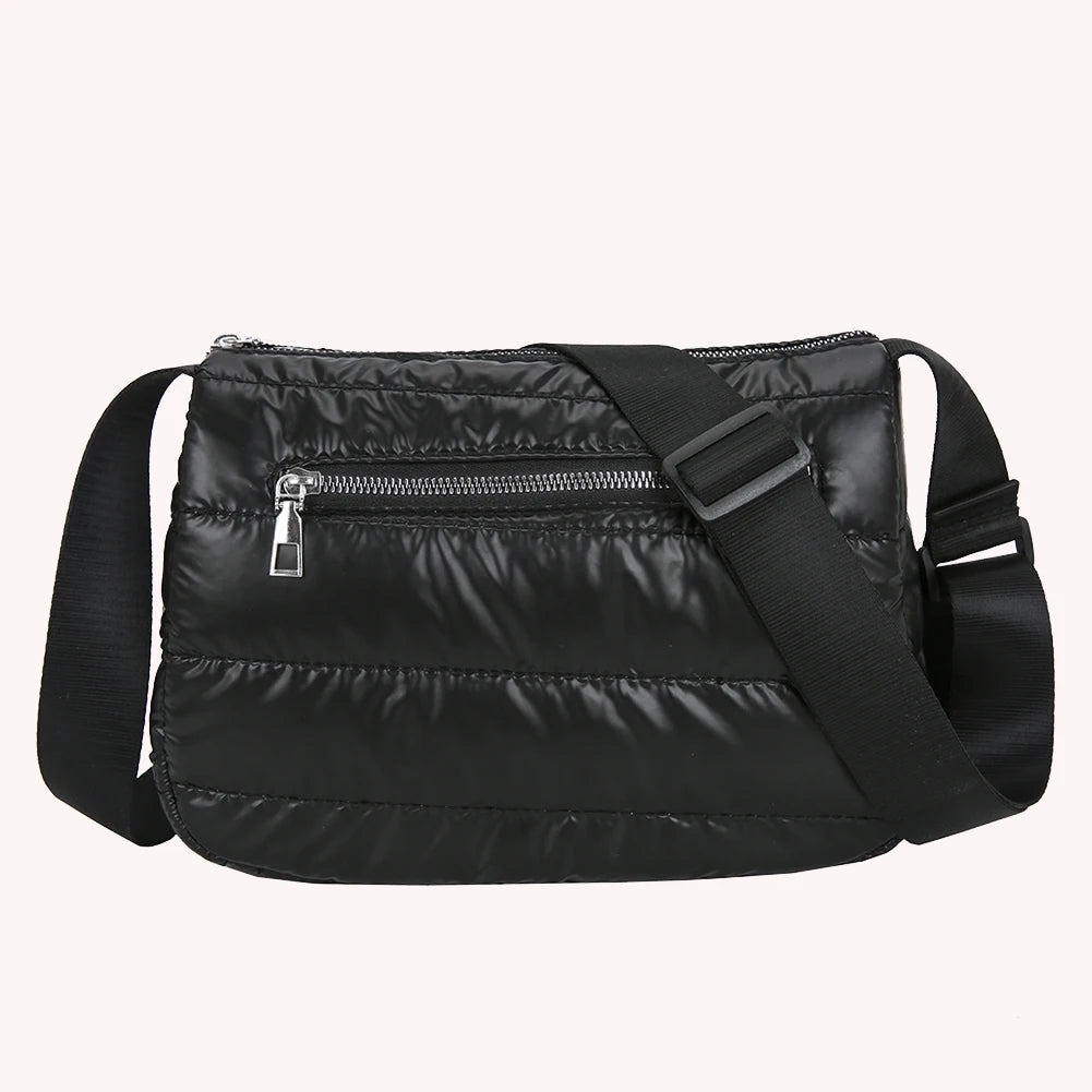 Stay stylish and organized with this retro quilted stripe crossbody bag made of pure nylon. Perfect for winter!