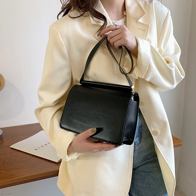 Retro Solid PU Leather Crossbody Shoulder Bag for Women