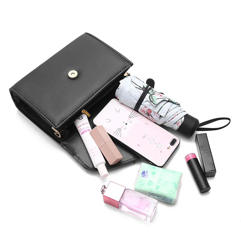 This women's handbag features a retro design with a solid color and can be worn as a single shoulder or diagonal bag.